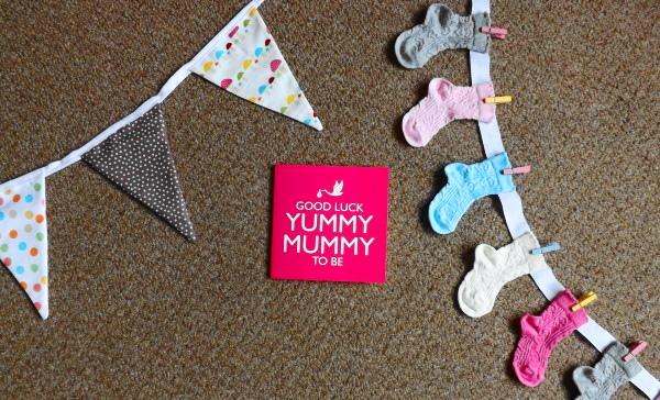 I’d made bunting for the baby’s nursery as part of my gift and used that to help decorate, alongside some baby sock bunting (baby socks are the most ridiculously cute items of clothing in existence!)