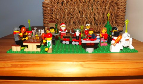 Our decorations are eclectic (and that’s being polite!) ranging from the little wooden nativity scene I painted, through the traditional tree to a Lego Christmas party scene (leftovers from last year’s Lego advent calendar!)