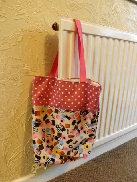 For 5 of my friends I made reusable tote bags. I sewed them in contrasting fabrics and made them fully lined. I was pretty proud of myself for this! I filled them with a couple of little personalised gifts for each lady and added a little tag asking them to reuse the bag in future (doing my little bit to help the environment!) Here they are: